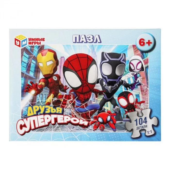 Друзья супергерои. Пазлы в коробке 104 детали. 190х141х35 мм. Умные игры 4660254466425