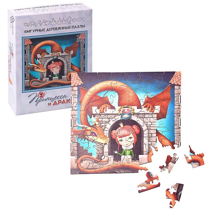 Фигурный деревянный пазл "Принцесса и Дракон" 8262