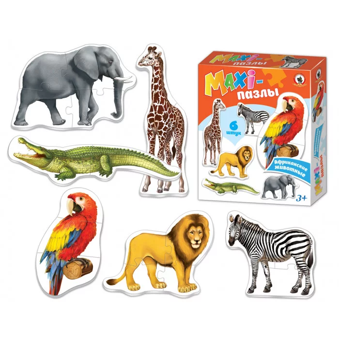 - Комплектация:Жираф (2 элемента) Крокодил (2 элемента) Попугай (3 элемента) Зебра (3 элемента) Лев (4 элемента) Слон (4 элемента)