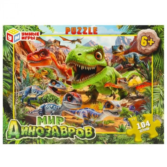 Мир динозавров. Пазлы классические в коробке. 104 детали.190х141х35 мм. Умные игры. 4660254451193