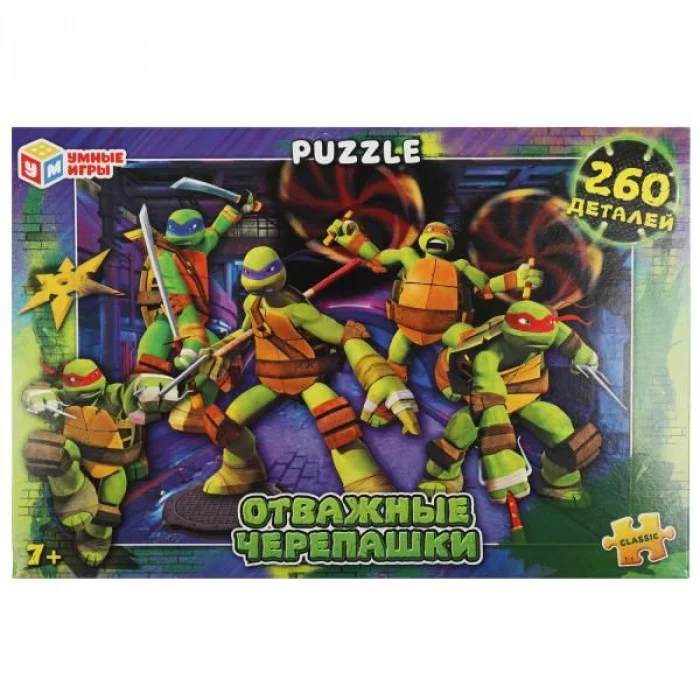 Отважные черепашки. Пазл классический в коробке. 260 деталей. 285х190х33 мм. Умные игры 4650250583790