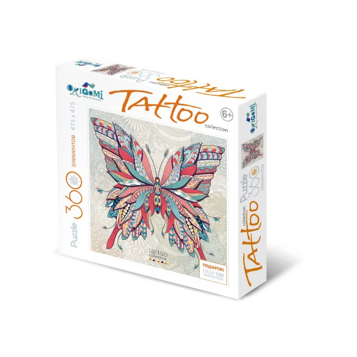 Новая серия пазлов Tattoo коллекции «Арт терапия» вдохновляет и очаровывает с первого взгляда! Пазлы из 360 элементов удобно собирать, а их квадратная форма впишется в любой интерьер и станет его ярким акцентом! Выберите один из 4 сюжетов с модными эскизами татуировок или соберите всю линейку!