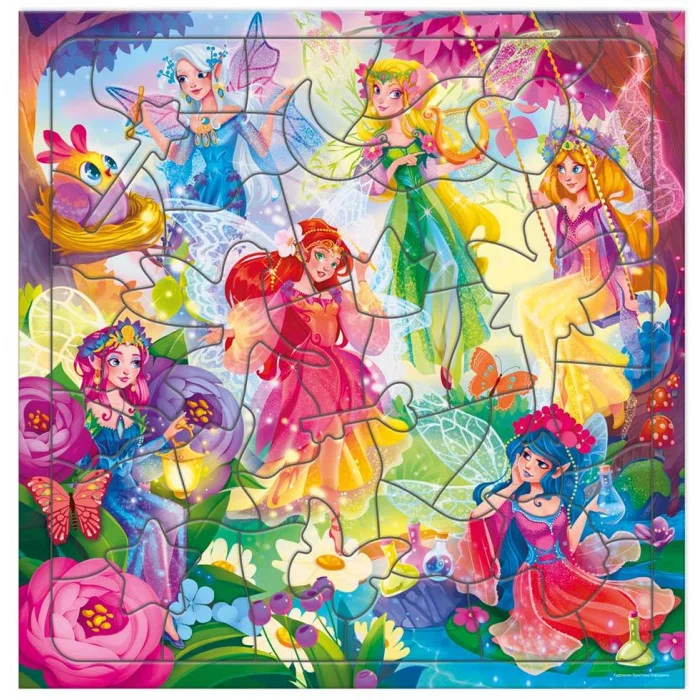 Пазл фигурный на подложке. 45 деталей. Лесные феи. 30х30,5 см.
