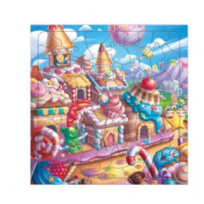 Пазл фигурный на подложке. 80 деталей. Сладкий город. 30х30, 5 см. ГЕОДОМ