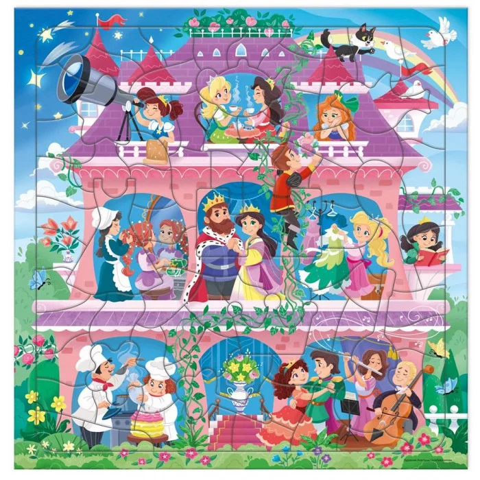 Побывать в замке принцессы – мечта любой девочки. С новым фигурным пазлом Fluff-Puzzle это проще простого! Правильно сложите все фрагменты – и отправляйтесь гулять по замку! Элементы пазла – части замка и аксессуары маленькой принцессы! Пазл тренирует мелкую моторику, внимание, память и способствует развитию образного мышления. А благодаря рамке и фрагментам из плотного картона пазл удобно хранить и брать с собой. Рекомендованный возраст: 6+.