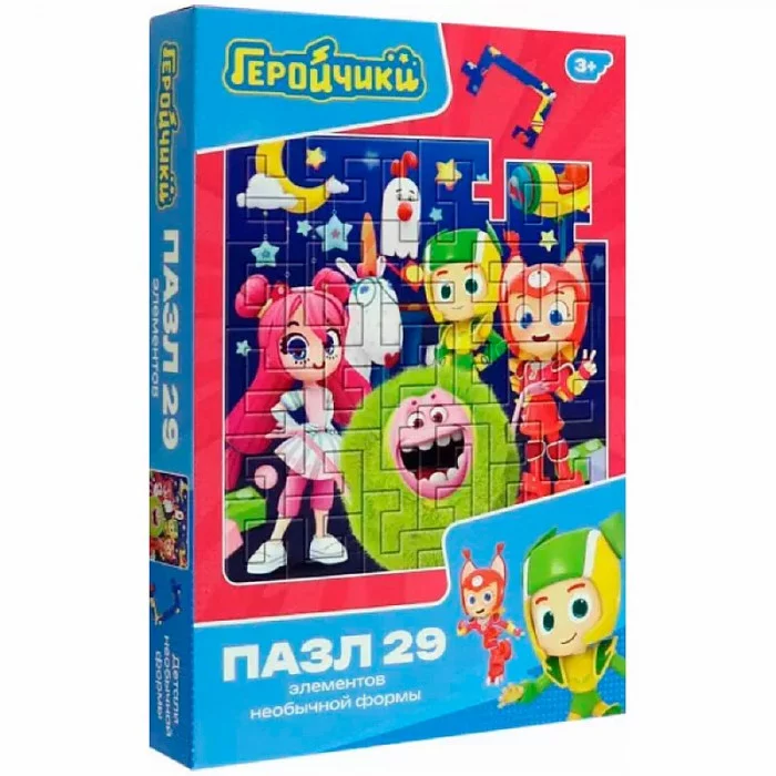 Размер упаковки: 20 х 13,5 х 3 см Вид упаковки: картонная коробка Размер изображения: 21 х 21 см Функционал: развлечение для детей Страна производитель: Россия Материал: картон Комплектация: 29 элементов Вес: 90 гр. Возраст ребенка: 3+ Собирать пазлы любят многие дети и взрослые. С помощью них можно отвлечься и снять эмоциональное напряжение. Пазл «Геройчики. Радостный Бублик» – отличный способ весело и интересно провести время. Отличительной особенностью данного пазла является детали необычной геометрической формы. Детали пазла изготовлены из высококачественного, прочного картона. Собирание пазлов развивает: - мелкую моторику; - внимательность; - координацию движений; - логическое мышление; - усидчивость.