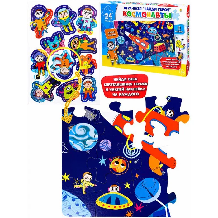 Пазл с наклейками Найди героя "Космонавты" (11 наклеек) (Арт. ИН-8326) ИН-8326