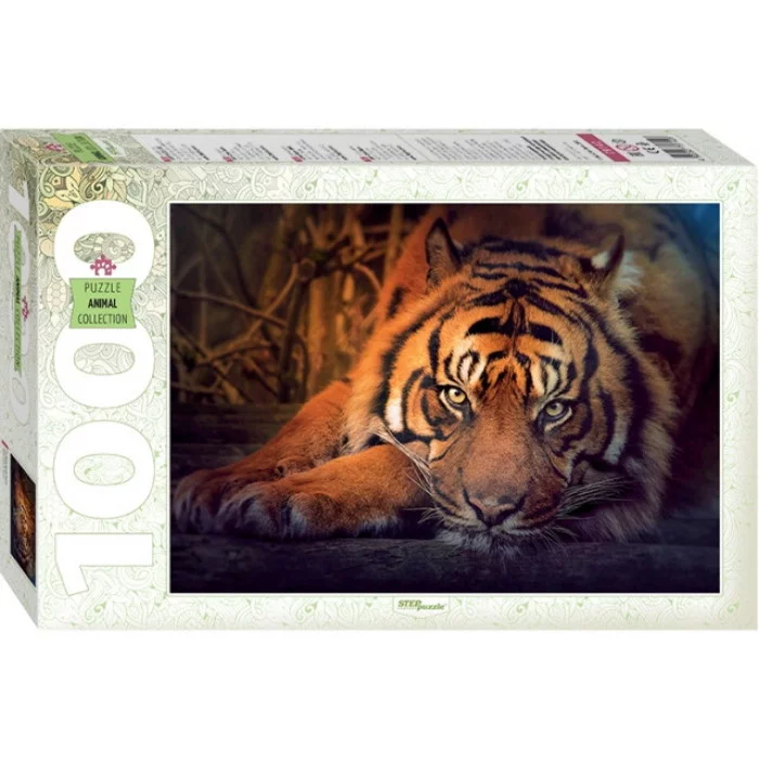 Пазл «Сибирский тигр» входит в серию «Animal Collection». На картинке мы видим величественного хищника. Зверь кажется спокойным и расслабленным, но глаза его зорко следят за происходящим вокруг. Особенности: — стандартные детали пазла (2?1,8 см); — размер собранного изображения — 68 х 48 см; — материал — картон; — качественное изображение; — 1000 элементов; — экологически чистые, нетоксичные материалы. Соответствует требованиям безопасности продукции. Возраст: от 7 лет.
