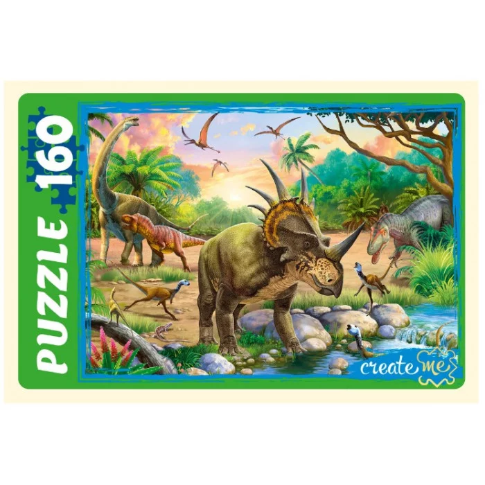 Пазлы на 160 элементов "МИР ДИНОЗАВРОВ" – популярная занимательная игра, которая развивает мелкую моторику рук, память, внимание посредством собирания яркой и красочной картинки, состоящей из мелких деталей. Пазлы изготовляются только из картона высокого качества.