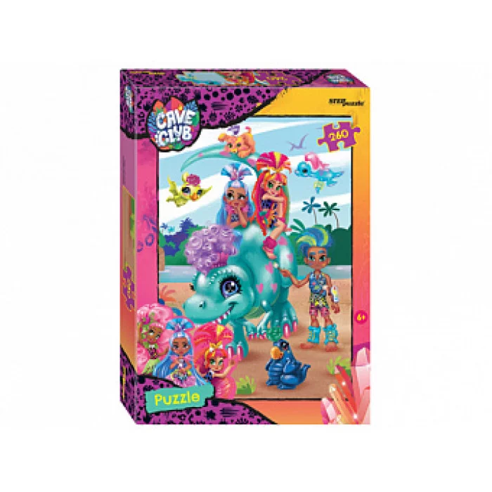Пазл Cave Club состоит из 260 деталей. На картинке представлены основные персонажи этого нового мультфильма от корпорации Mattel. Характеристики пазла: стандартные детали пазла (2х1,7 см); размер собранного изображения -24х34,5 см; материал -картон. Пазл Cave Club очень яркий, его наверняка оценят все фанаты этой истории и любители кукол.