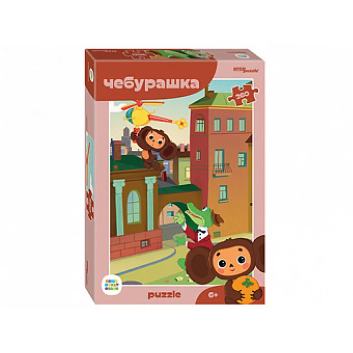 Пазл «Чебурашка» состоит из 260 деталей. На картинке мы видим одну из сцен истории — ту, где Чебурашка летит на игрушечном вертолете, а Гена пытается его поймать. Характеристики пазла: стандартные детали пазла (2×1,7 см); размер собранного изображения - 24*34,5 см; материал – картон; качественное изображение; экологически чистые, нетоксичные материалы (компания Step Puzzle гарантирует высокое качество пазла и точность подгонки). Для кого? Пазл подходит для детей от 6 лет. Пазл «Чебурашка» оценят и взрослые, и дети, ведь он сделан по мотивам нестареющего мультфильма.