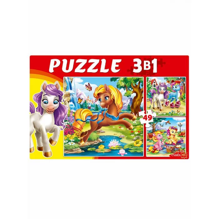 Пазлы 3в1 "ЧУДЕСНЫЕ ПОНИ" придутся по душе всем малышам. Ведь набор состоит сразу из 3 пазлов по 49 элементов! Такой занимательный досуг прекрасно развивает мелкую моторику рук, память и внимание. Изготовлено из картона высокого качества.