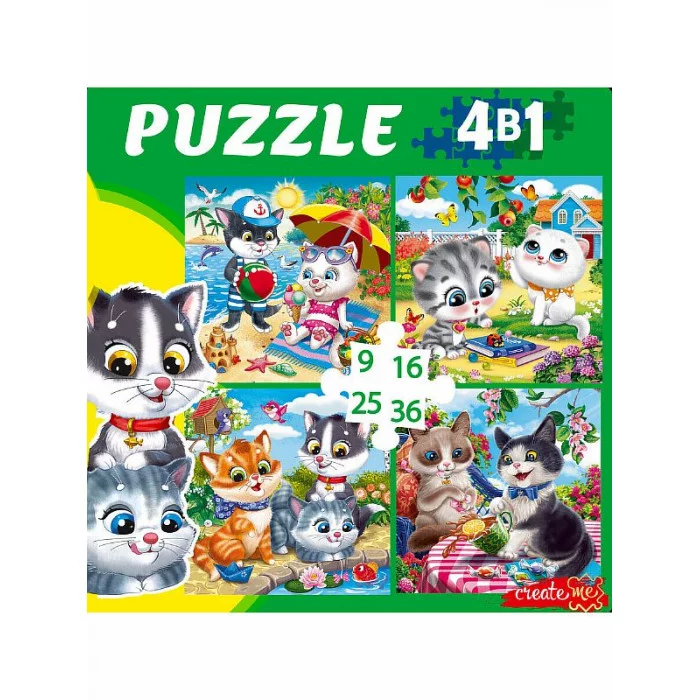 ПАЗЛЫ 4 в 1 ЗАБАВНЫЕ КОТИКИ №6 (9,16, 25, 36 эл.) (Арт. П-8387)