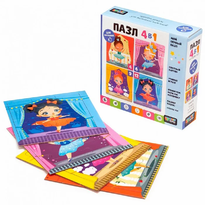 Пазлы 4в1 "Маленькие балерины" 4*6*9*12 элементов 07871