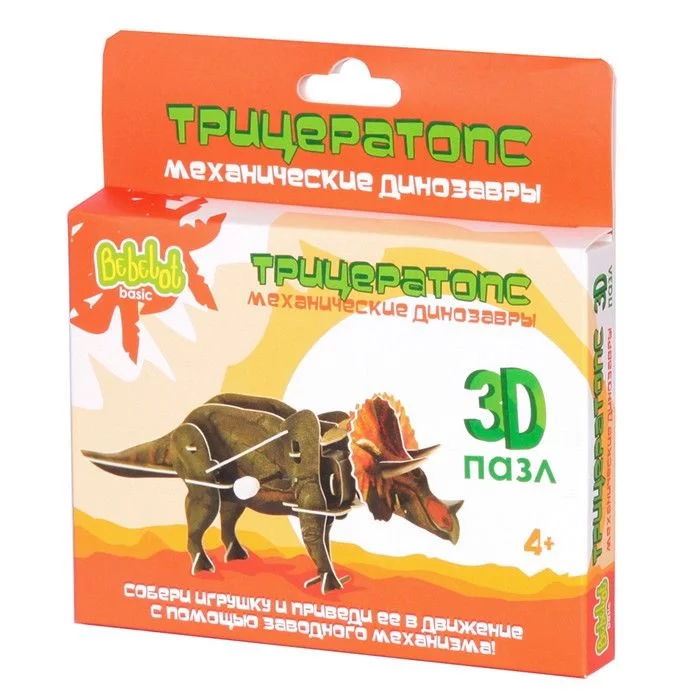 Пластиковый 3D-пазл с заводным механизмом Bebelot Basic "Трицератопс" BBA0505-013