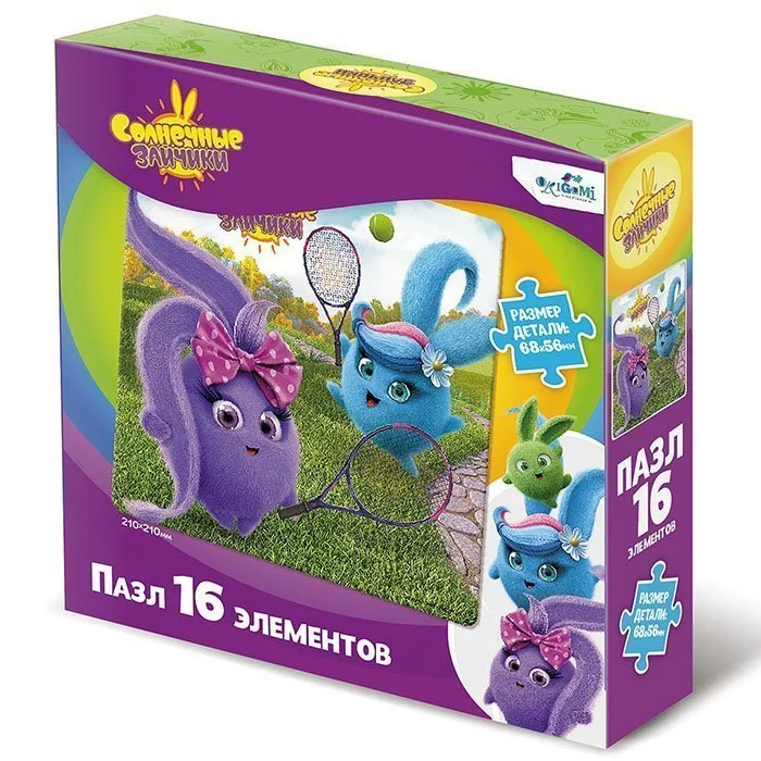 Пазл 16 элементов, основанный на любимых сюжетах мультфильма "Солнечные зайчики" понравится любому ребенку, а сборка яркой картинки принесет радость не только малышам, но и их родителям.