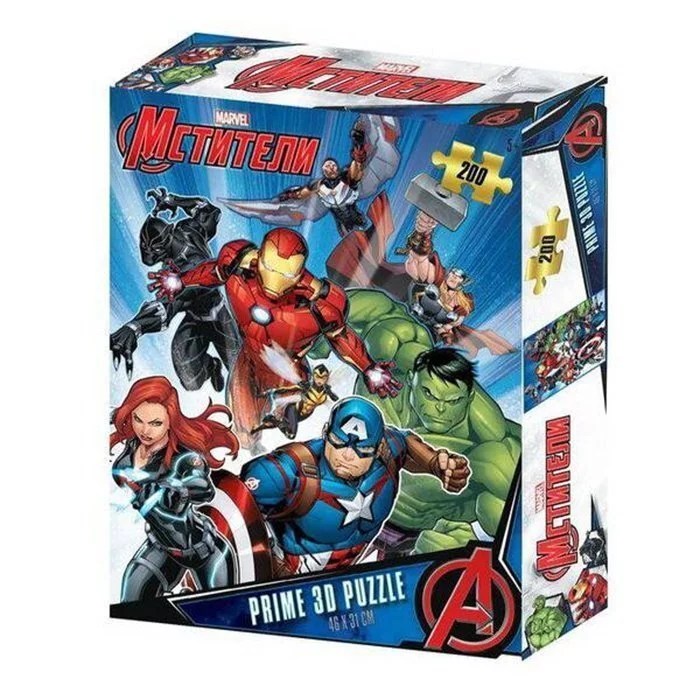 Стерео-пазл Prime 3D "Мстители" с эффектом объемного изображения. Размер собранного пазла 46х31см. Упаковка: картонная коробка 17,8х22,9х5 см со стерео-картинкой на лицевой стороне. Количество элементов пазла 200.