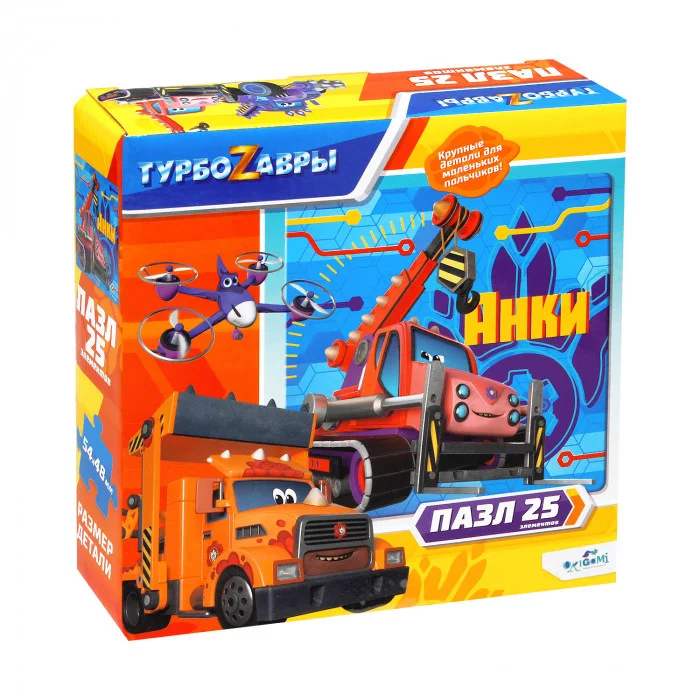 Размер товара: 15,3х15,3х4,5 см Брэнд: Origami Материал: бумага, картон Количество деталей: 25 шт. Вес: 100 г Возраст: от 3 лет Страна производитель: Россия Собирание пазлов является одним из самых любимых детских развлечений. Собирать пазлы можно одному или всей семьей. Это отличная возможность отдохнуть от повседневной суеты для взрослого, а для ребенка возможность развить пространственное мышление, внимательность и усидчивость. Пазлы «ТурбоZавры. Анки» от «Origami» обязательно понравится поклонникам мультсериала. Соберите изображение любимого персонажа Анки. Детали пазла крупные, их удобно брать малышу маленькими пальчиками. В процессе сборки пазлов, у малыша, развивается мелкая моторика, слуховое и зрительное внимание, речь и память. Пазл изготовлен из высококачественных и экологичных материалов. Подарите своему малышу полезный и приятный подарок!