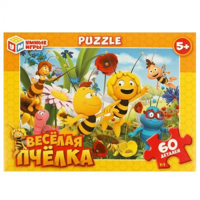 Веселая пчелка. Пазлы классические в коробке. 60 деталей.190х141х35 мм. Умные игры. 4660254451544