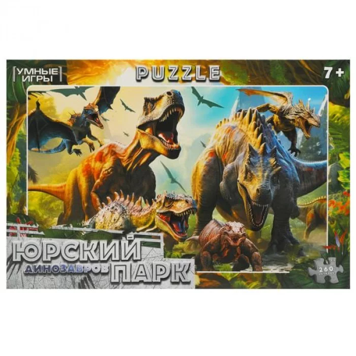 Юрский парк динозавров. Пазл классический в коробке. 260 деталей. 285х190х33мм. Умные игры 4660254444843