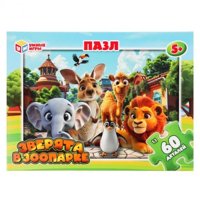 Зверята в зоопарке. Пазлы в коробке 60 деталей. 190х141х35 мм. Умные игры 4660254466395