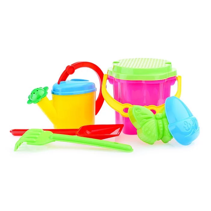 Песочный набор № 109 (ведро-цветок 0, 7 л, сито, грабли 20см, совок 21 см, 2 формочки, лейка 0, 3 л) 1809