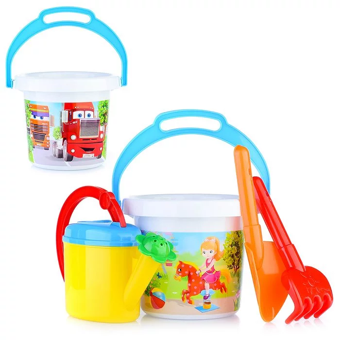 Песочный набор № 133 (ведро 1,4 л термо, лопатка 19см, грабли лейка 0,5 л) 1833
