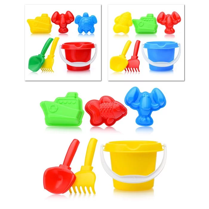 Песочный набор "Пляжный" ( 3 формочки, совок, грабли, ведро) У381