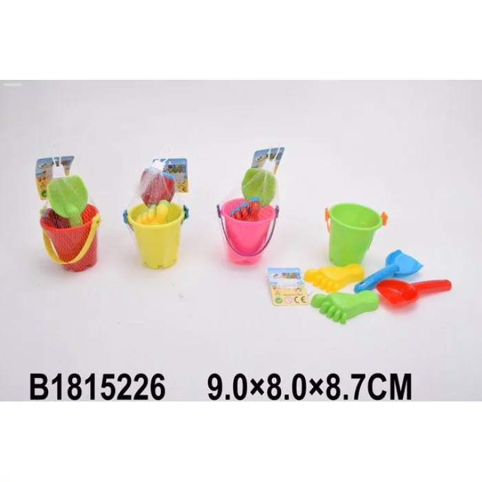 Песочный набор "След на песке"(ведерко, 2 лопатки, 2 форм.)в сетке(9х8х8, 7) (арт. И-8397)