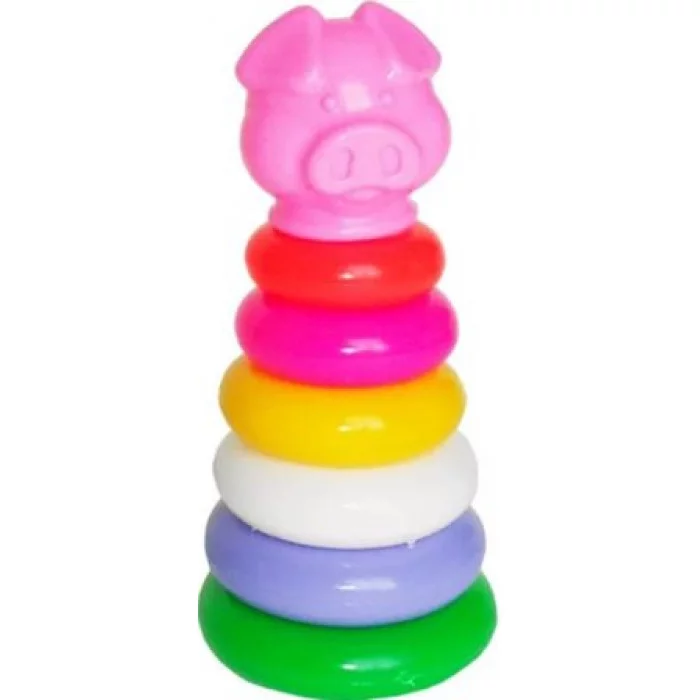 Размер изделия: высота 22 см Состав: пластик Возраст: от 12 месяцев Упаковка: сетка Комплектация: основание, 6 колец, верхушка Страна изготовления: Россия Пирамидка - это развивающая игрушка для самых маленьких. С ее помощью малыш знакомится с понятием "больше-меньше", учится основам логического мышления, тренирует навыки мелкой моторики и цветовое восприятие. Пирамидка состоит из основания, 6 колец разного цвета, а также верхушки в виде поросенка. Все элементы изготовлены из высококачественного пластика, не имеют острых краев и зазубрин. Цвета представлены в ассортименте.