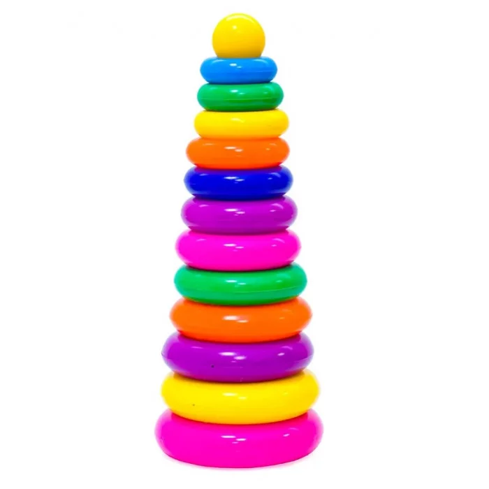 Яркие цветные кольца помогут изучить цвета и разовьют мелкую моторику малыша. Полезная и очень занимательная игрушка станет прекрасным подарком для ребенка.