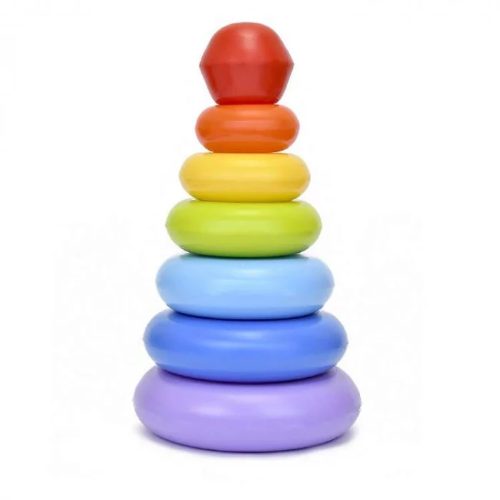 Яркие крупные детали игрушки, повторяющие основные цвета радуги - от ярко-алой верхушки до фиолетового нижнего кольца, различаются по размеру и помогают малышу освоить понятия «больше / меньше» и запомнить цвета. Игра с такой пирамидой обязательно увлечет ребенка и станет отличным «тренажером» для тренировки маленьких пальчиков, усердия и аккуратности. Яркая и полезная игрушка украсит игровую или детскую комнату, разнообразит и функционально дополнит игровое пространство!