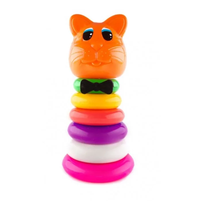 Дети уже нескольких поколений с удовольствием играют с пирамидками, первыми развивающими игрушками. Развивающая игрушка пирамидка Котенок состоит из ярких колец, а на ее вершине голова милого котенка. Каждое кольцо разного размера и имеет разные цвета. Пирамида развивает у детей мелкую моторику, координацию движений, логическое и образное мышление, навыки конструирования. Малыш научится различать предметы по величине, цвету, считать, сравнивать их и сортировать.