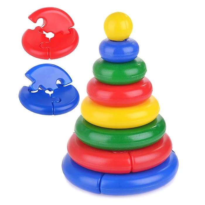 Пластмассовая пирамидка изготовлена из материалов абсолютно безопасных для маленьких детей.