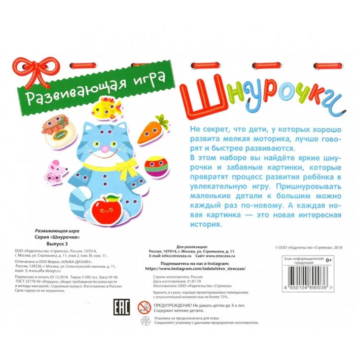 Развивающая игра.Шнурочки. Выпуск 3 Стрекоза 4650104890036