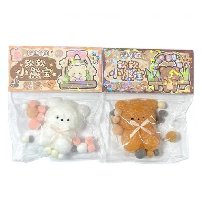 Антистресс Сквиш Лапка Мишка с Бантиком + Помпонами AF-106