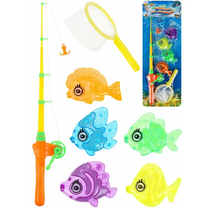 Рыбалка пластиковая (20х50см) "Большой улов" (5 рыбок, удочка с катушкой, сачок, в блистере) M1500-14
