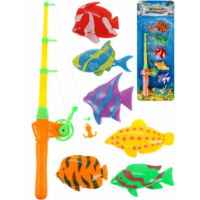 Рыбалка пластиковая (20х50см) "Удачный улов" (6 рыбок, удочка с катушкой, в блистере) (Арт. M1500-10)