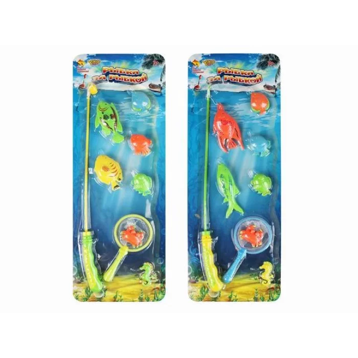 Рыбалка пластиковая "РЫБКА ЗА РЫБКОЙ-3" (7 рыбок, 1 удочка, 1 сачок, 2 в. микс, в блист.) (Арт. M1250)