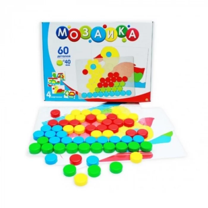 Серия "Собиралкин". Мозаика 60 фишек, 40 мм с цвет. пример. (прозр. поле, карточки) (Арт. М-9582) 15И35738