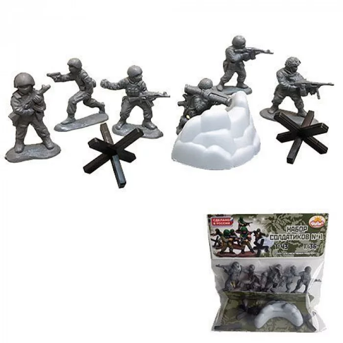 Солдатики - 6 шт, бруствер, противотанковый еж - 2 шт