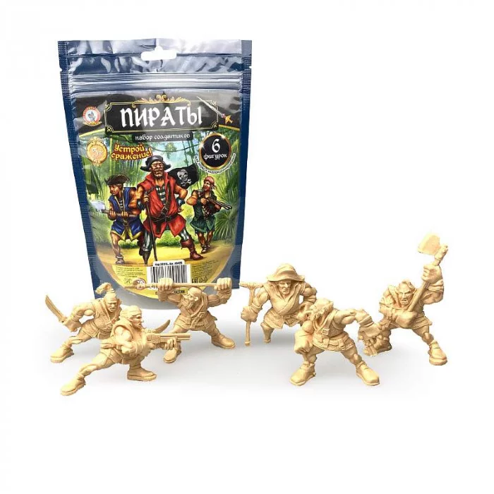 В комплект набора солдатиков входит 5 фигурок. Фигурки выполнены из качественного пластика и имеют высоко детализированную прорисовку. Дети смогут рассмотреть все элементы одежды и оружия Пиратов. С фигурками можно играть; устраивать сражения; коллекционировать; а собрав несколько разных отрядов; можно устроить настоящую битву. Фигурки можно раскрасить любыми модельными красками по своему желанию.