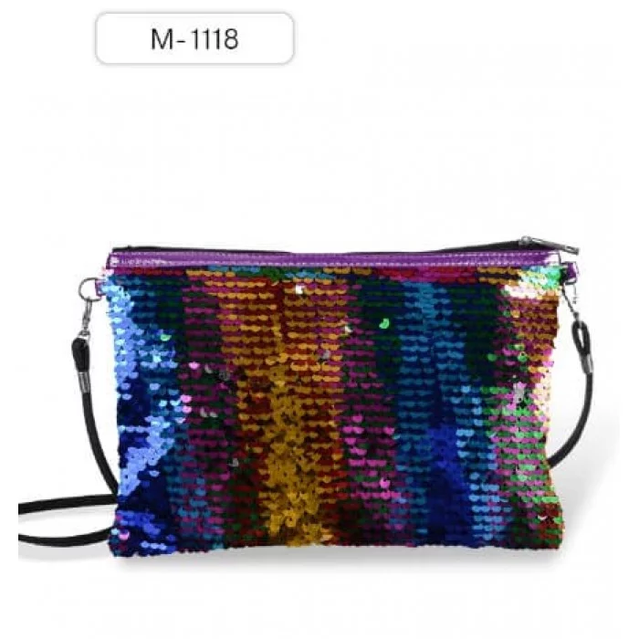 Сумочка M-1118 с пайетками GOJI 3, через плечо, на молнии, 20 х 28.5 см, асс. 6 цветов, ОПП-уп. M-1118