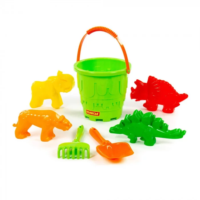 Ведро-замок большое, лопатка №5, грабельки №5, формочки (тигр + мамонт + динозавр №1 + динозавр №2)