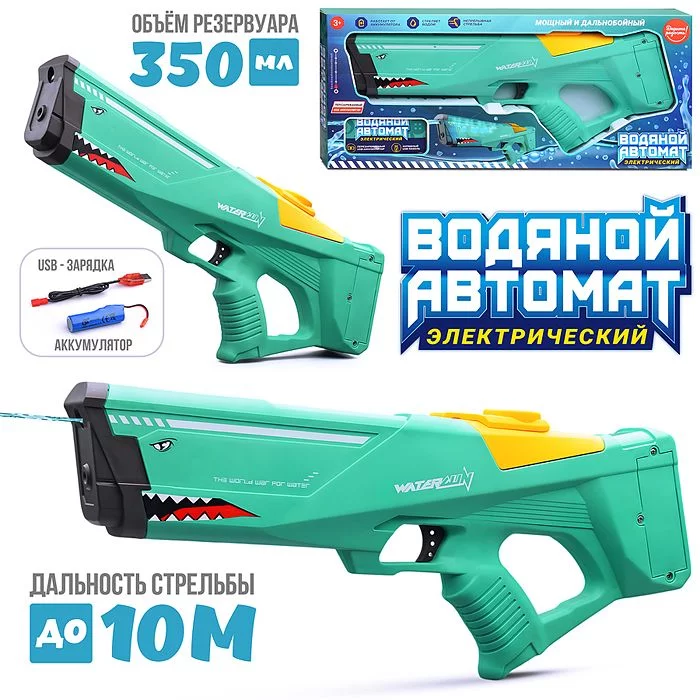 • Стреляет водой.