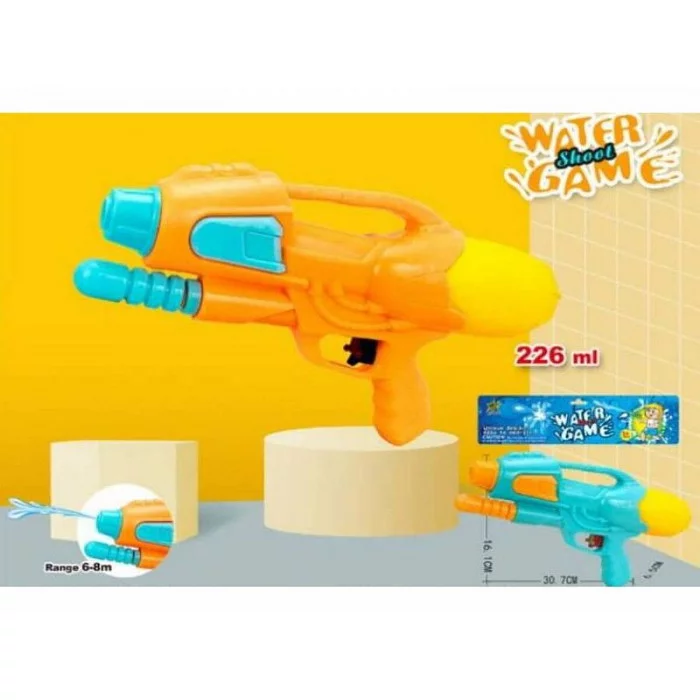 Водный пистолет станет отличным развлечением для детей и взрослых в жаркую летнюю погоду. Его можно использовать для своих игр и развлечений на пляже, на пикниках или в парках. Изготовлен из высококачественного и безопасного пластика. Размер: 30,7х16,1х6,5 см. Дальность стрельбы: 6-8 м. Объём: 266 мл. Цвет микс. В пакете.