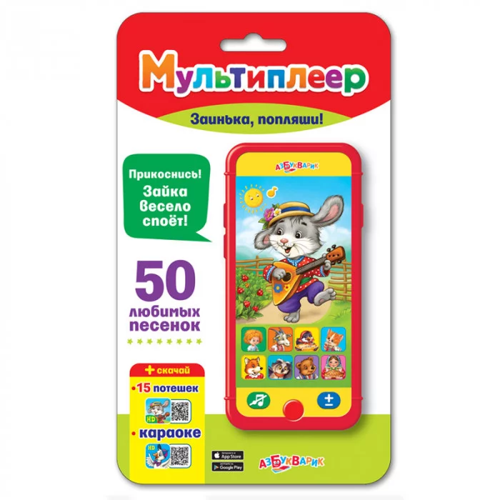 Весёлый заинька приглашает петь и танцевать! В этом красочном мультиплеере собрано 50 любимых песенок и потешек для детей: «Калинка», «Антошка», «Вышел зайчик погулять», «Два весёлых гуся», «Ладушки», «Валенки», «Баюшки», «Волк-волчок», «Петушок», «Во поле берёза стояла», «Частушки», «Топотушки», «Мороз», «Каравай», «Мишка косолапый» и другие.