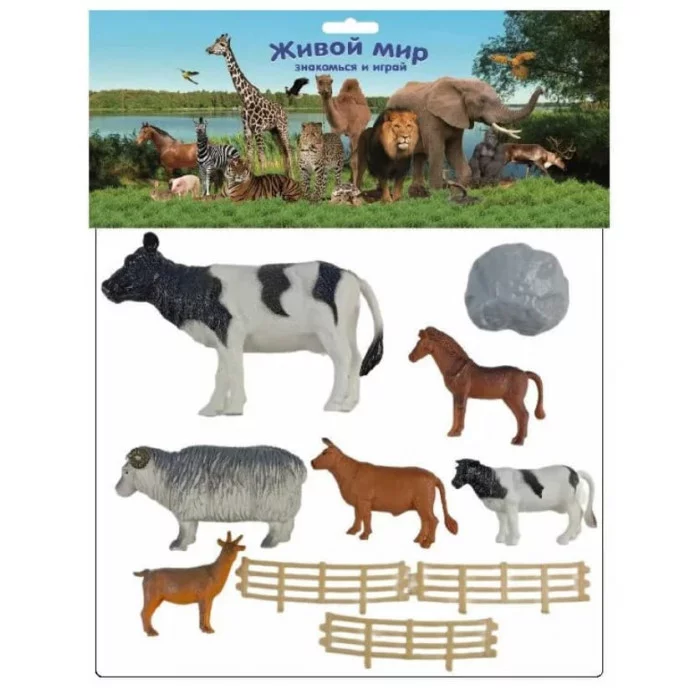 Набор домашних животных(6 штук) с полем,камнем,забором в пак HB2573