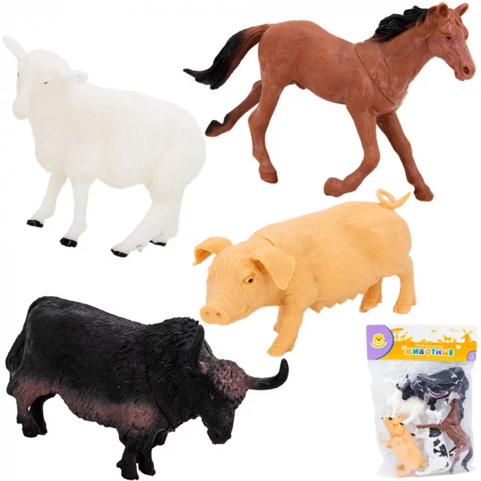 Комплектация: баран (12 х 7 см) - 1 шт., лошадь (14 х 11 см) - 1 шт., свинья (12 х 6,5 см) - 1 шт., бык (14 х 7,5 см) - 1 шт., корова (13 х 8 см)
