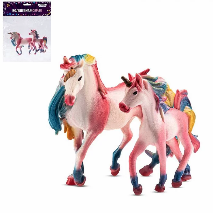 Набор "Единорог и жеребенок" - это любимый сказочный персонаж всех малышей! Окунуться в чудесный мир волшебства детям помогут эти замечательные фигурки единорогов. Такая популярная игрушка принесёт много положительных эмоций. Реалистичные наборы животных развивают творческие способности, воображение, логическое мышление и мелкую моторику. Мифические животные всегда будут привлекать внимание, потому что их не существует в нашем мире и от этого они еще интереснее. Данные наборы игрушек хорошо проработаны и выполнены из качественного полимерного материа, фигурки животных не имеют постороннего запаха. Соберите коллекцию игрушечных единорогов! Размер в/п 18*4,3*10,8 см